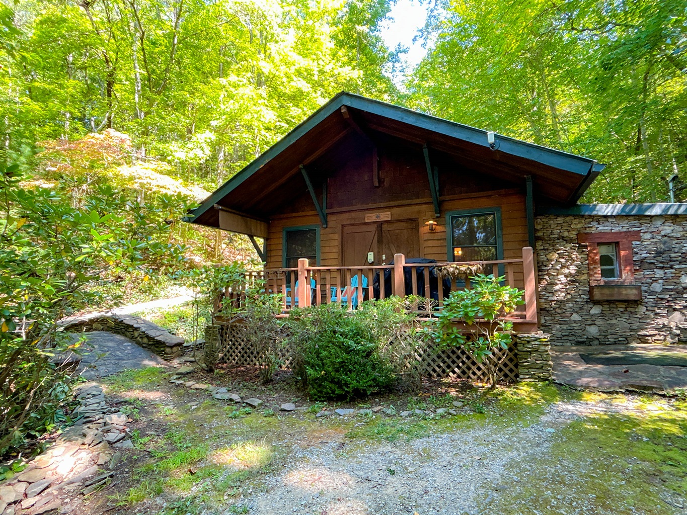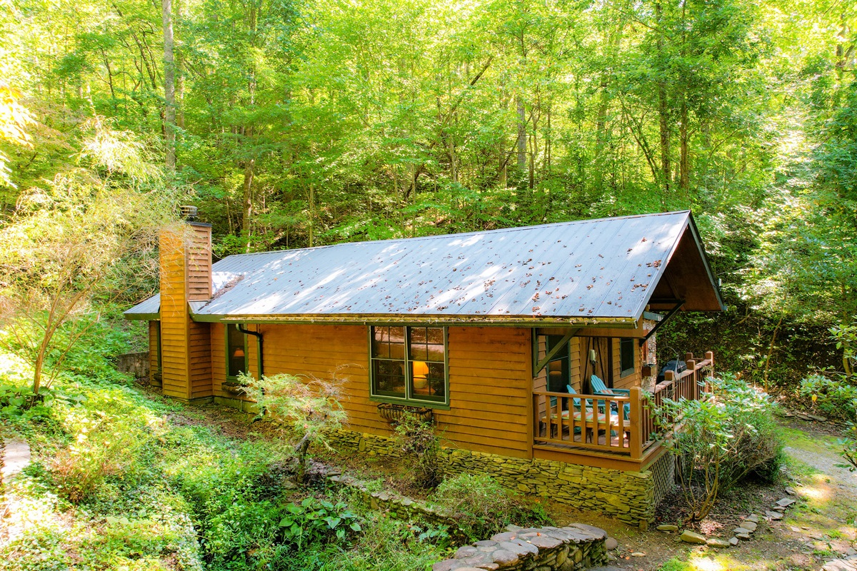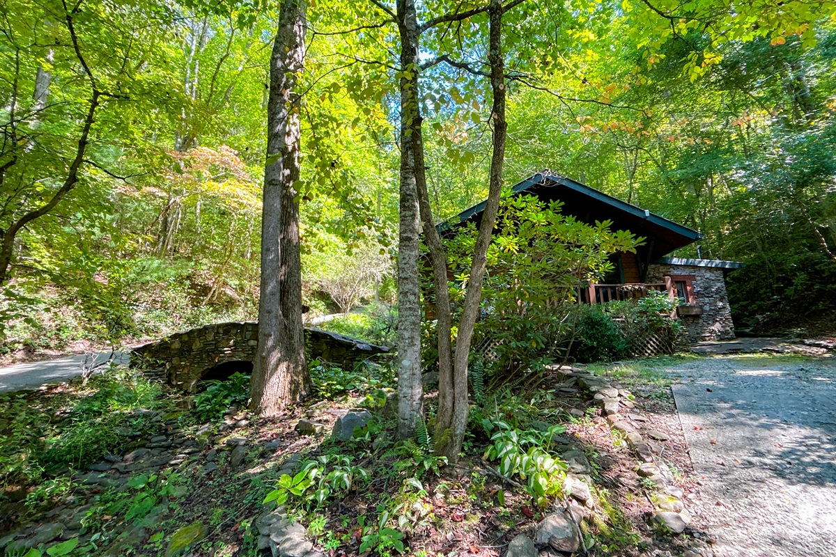 Buffalo Creek Bridge Cottage offers a charming one-bedroom escape just 3 miles from downtown Bryson City, NC. This private woodland hideaway is tailor-made for couples seeking seclusion, natural beauty, and romantic comfort. Nestled among mature trees and the soothing sounds of a spring-fed creek, the cottage delivers peace and privacy without sacrificing convenience. With fully paved, motorcycle-friendly access, it’s the perfect home base for exploring the Great Smoky Mountains.