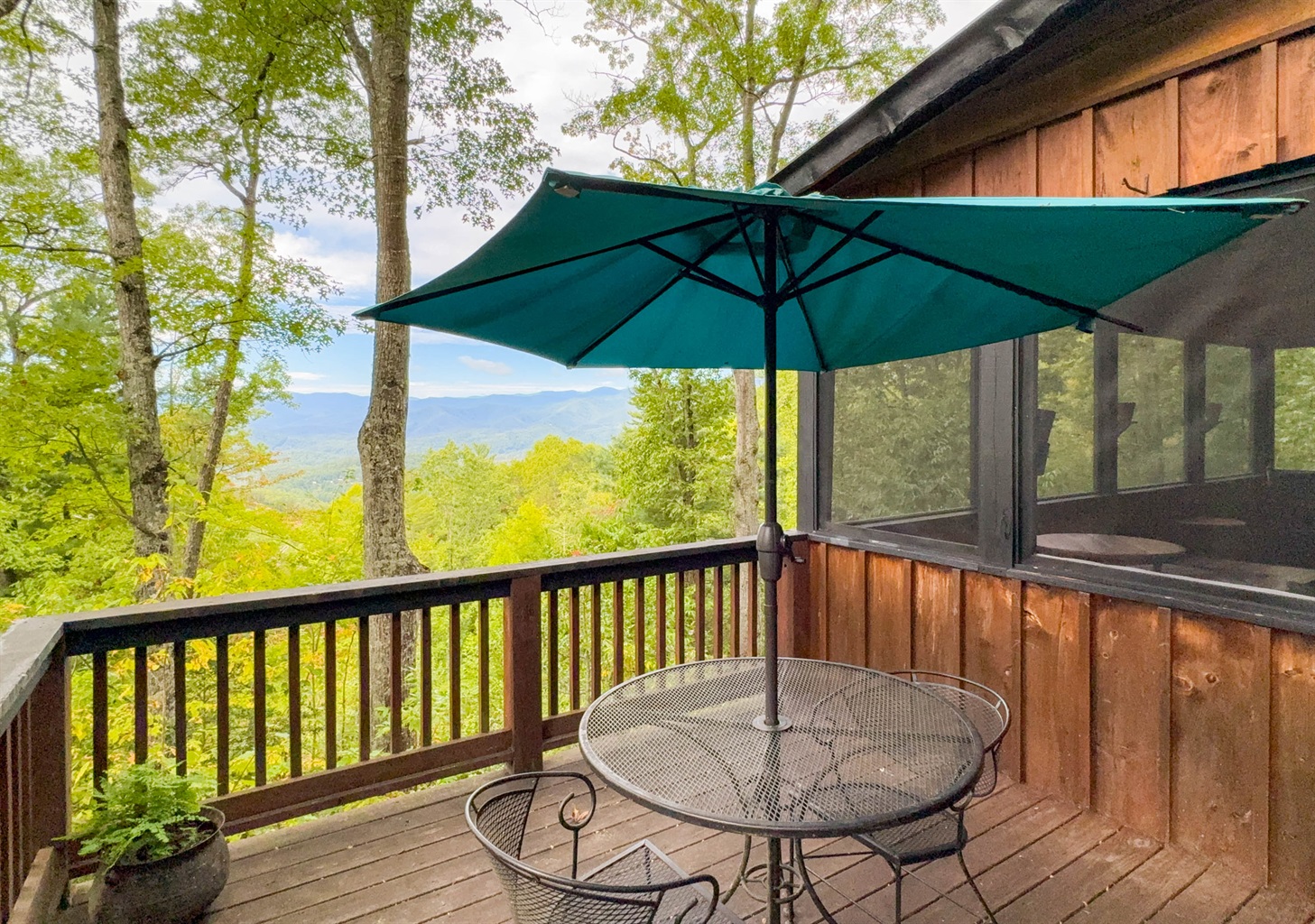 • Screened-in porch + seasonal heated whirlpool tub with uninterrupted mountain views.