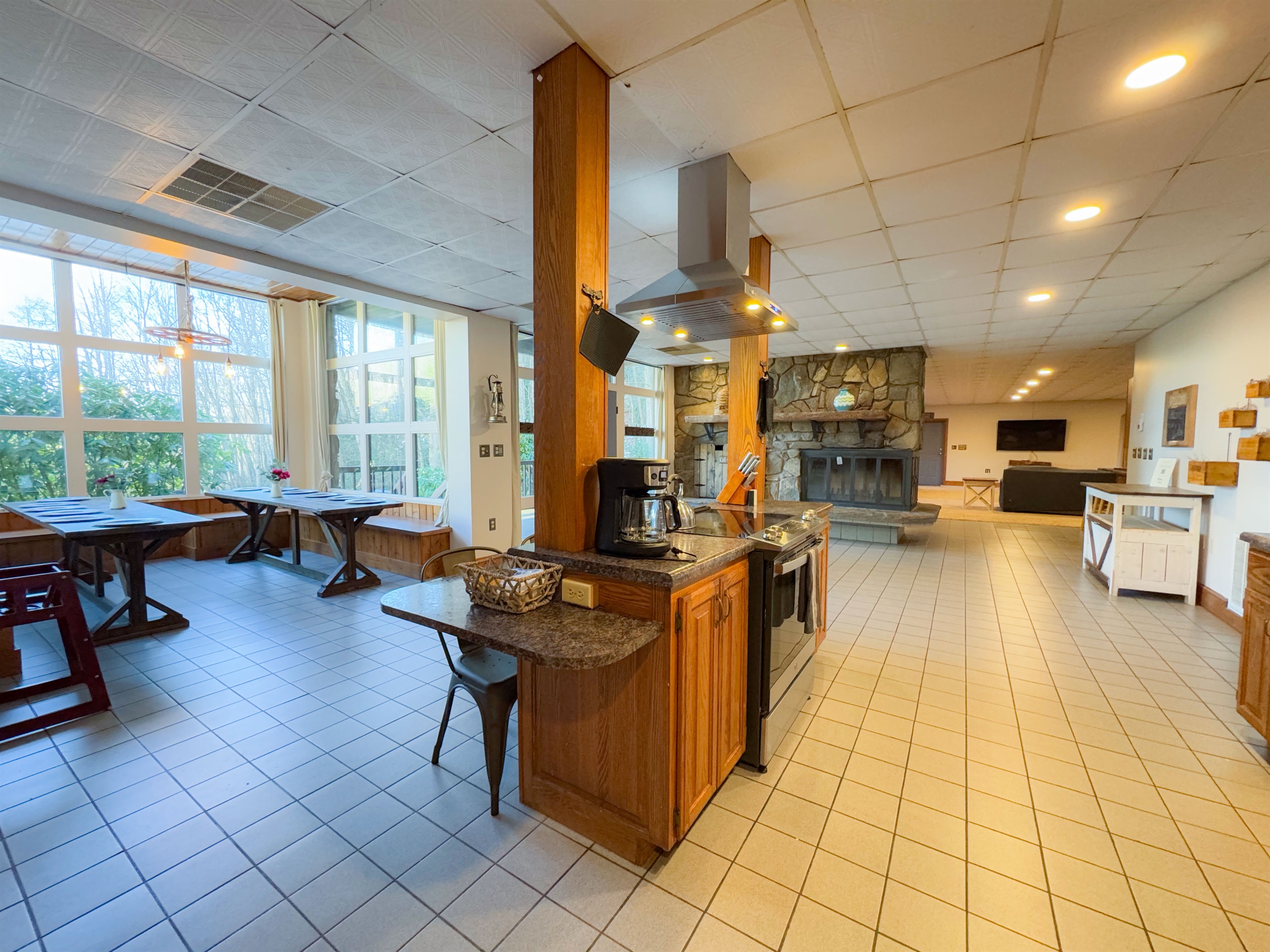 🏋 Large Great Room—70" Smart TV, plush sofas, and seating